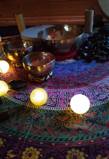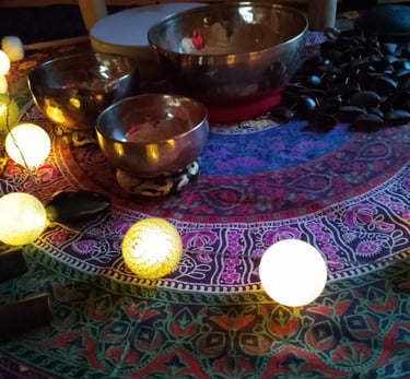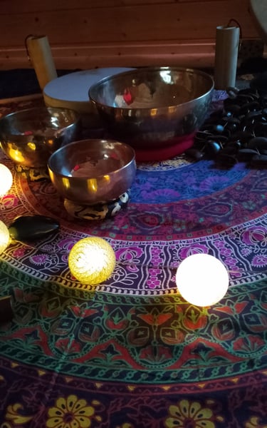 Allongé(e), vous vous laisserez porter et traverser par les sons et les vibrations des bols tibétains, tambour, carillons, tongue drum, et bien d'autres.